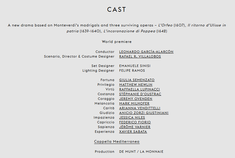 I recently saw the world premiere of ‘I Grotteschi’ at La Monnaie, a two-part Monteverdi pastiche, drawing material from ‘L’Orfeo’, ‘Il ritorno d’Ulisse in patria’, and ‘L’incoronazione di Poppea’, to reframe them into two twin operas, ‘Miro’ and ‘Godo’.